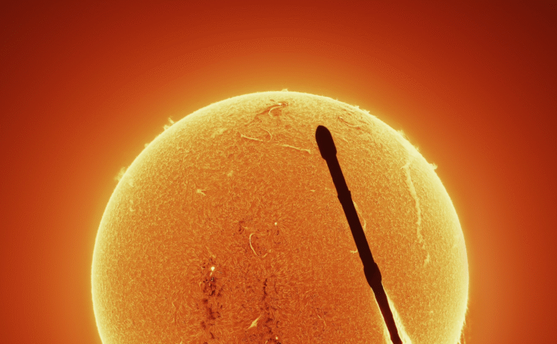 Словно спичка горит с обратной стороны. Американский астрофотограф Эндрю Маккарти сделал завораживающий снимок, на котором ракета Falcon 9 от SpaceX пролетает на фоне Солнца. Фото не просто захватывающее, но и уникальное: оно показывает сложные детали хромосферы — слоя солнечной атмосферы, недоступного при обычной съёмке. Кадр был сделан 6 сентября 2025 года во Флориде (США), примерно в 13 километрах от стартовой площадки. Для съёмки он использовал специально сконструированный телескоп, подключённый к астрономической камере. Фото: @AJamesMcCarthy / Х По словам Маккарти, выбор места оказался непростым, и он опирался на советы опытных наблюдателей запусков. Ранее он уже снимал ракеты, но именно этот кадр стал для него особенным благодаря деталям солнечной поверхности, зафиксированным в линии излучения водорода (Н‑альфа). «Подобные снимки уже были, но с таким уровнем детализации солнечной хромосферы — никогда», — написал Маккарти в своих соцсетях. Астрофотограф запечатлел с Земли три далёкие туманности, включая «Сражающихся драконов»Астрофотограф сделал уникальное фото — МКС на фоне мощной солнечной вспышки