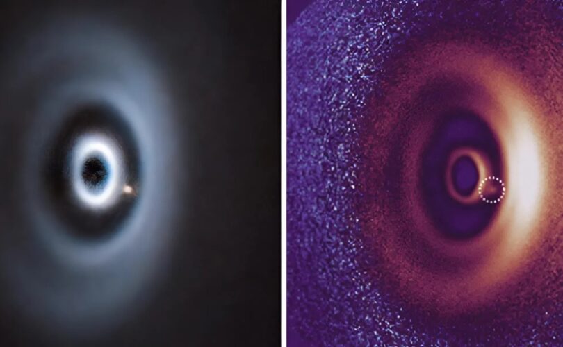 Космический «младенец» очень голоден. Астрономам удалось зафиксировать редкий момент — формирование новой экзопланеты в реальном времени. Газовый гигант WISPIT 2b, размером с Юпитер, активно поглощает вещество своей звезды WISPIT 2 и наращивает массу. Эта система расположена примерно в 430 световых годах от Земли. Снимки были получены с помощью Очень Большого Телескопа (VLT) в Чили. Учёные проводили экспресс-обзор молодых звезд, чтобы определить частоту появления газовых гигантов на широких орбитах, и в ходе исследования системы WISPIT 2 обнаружили не просто точку света, а сложную структуру протопланетного диска, что побудило их начать наблюдения. WISPIT 2b и её протопланетный диск в ближнем инфракрасном диапазоне. Изображение: C. Ginski / R. van Capelleveen Это первый подтвержденный случай обнаружения планеты внутри многокольцевого протопланетного диска из газа и пыли, структура которого напоминает виниловую пластинку с разрывами и кольцами. Её возраст составляет всего около 5 миллионов лет. Для сравнения: Солнечной системе около 4,6 миллиарда лет. WISPIT 2 — это молодая версия нашего Солнца. Звезда расположена в малоизученном регионе, и её обнаружение стало для нас настоящей удачей, поскольку мы не ожидали найти что-либо подобное. Это шанс понять, как рождаются планеты и почему тысячи экзосистем отличаются от нашей. Открытие, вероятно, станет эталоном для следующего поколения астрофизиков. Ришель ван Капеллевен Руководитель исследовательской группы Протопланетный диск системы WISPIT 2 в 380 раз шире расстояния от Земли до Солнца. Это делает его идеальной моделью для изучения эволюции планет, а также для понимания, почему экзопланетные системы столь разнообразны. WISPIT 2b и её протопланетный диск в видимом свете. Изображение: ESO Отдельная группа исследователей из Университета Аризоны (США) сумела запечатлеть WISPIT 2b в оптическом диапазоне. Их наблюдения подтвердили, что она продолжает формироваться, собирая вещество. Телескоп «Джеймс Уэбб» обнаружил аномалии в межзвёздной комете 3I/ATLASУчёные показали самое детализированное фото мощной Х-вспышки на Солнце