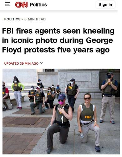Тогда многие белые, в том числе силовики, вставали на колени в знак поддержки движения Black Lives Matter и символического покаяния за расовые притеснения черных в прежние времена. По данным СМИ, уволено порядка 20 агентов ФБР, которые позировали в те дни для фото, стоя на коленях.