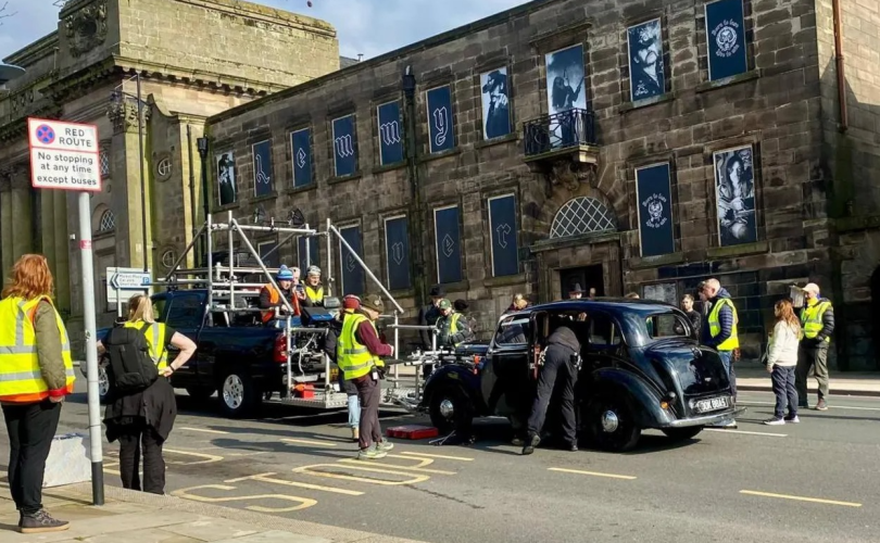 Первый день производства (4 марта) почти полностью прошёл внутри того же театра Queen’s Theatre, где создавались некоторые сцены оригинала. Его величественный винтажный интерьер идеально передаёт атмосферу середины XX века. На второй день (5 марта) съёмки переместились на улицу: там появились автомобили 1950‑х и декорации, воссоздающие облик послевоенной Британии.