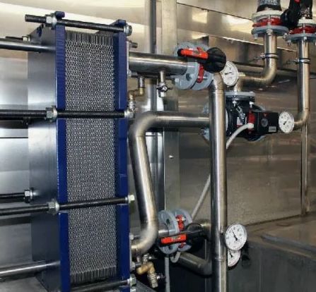 - Пластинчатые теплообменники. Состоят из тонких металлических пластин, между которыми циркулируют теплоносители. Отличаются компактностью, высокой эффективностью и простотой обслуживания.